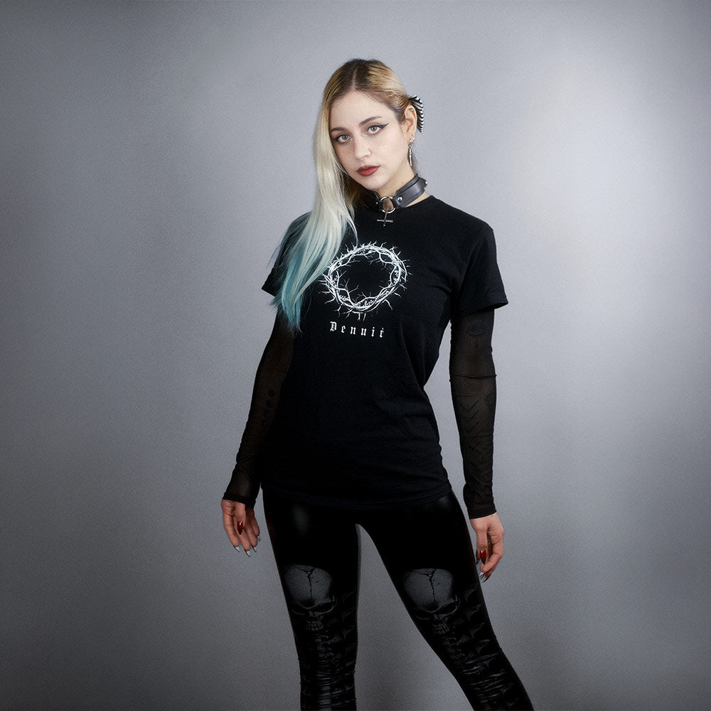 The Cycle Of Thorns t-shirt features the sacred artwork from our third album Ritual. A white circle of thorns symbolising pain, eternity, and the light hidden within darkness.