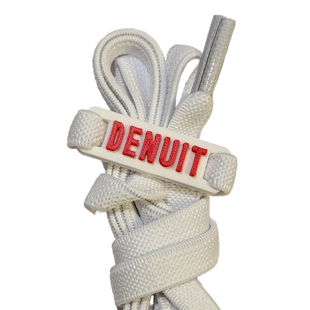 White laces with 3D printed Denuit charm